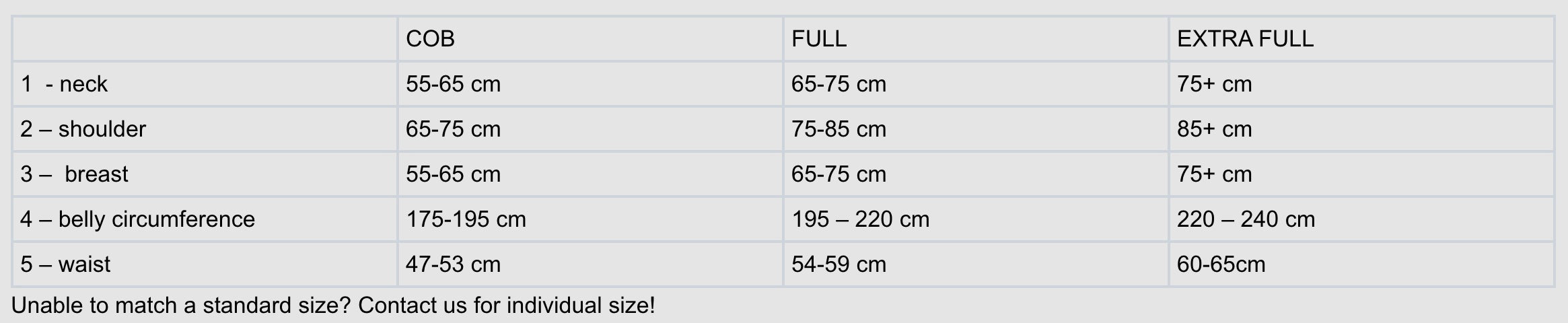 We offer the recovery belt in 3 sizes depending on the horse's belly circumference: COB, FULL, EXTRA FULL.