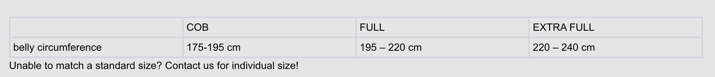 We offer the recovery belt in 3 sizes depending on the horse's belly circumference: COB, FULL, EXTRA FULL.